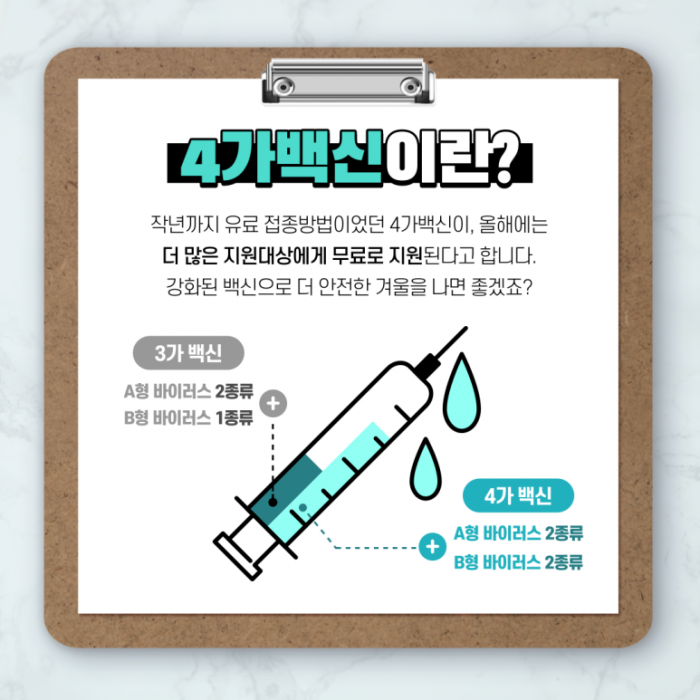 반드시 4가 무료 독감 백신 접종하세요!